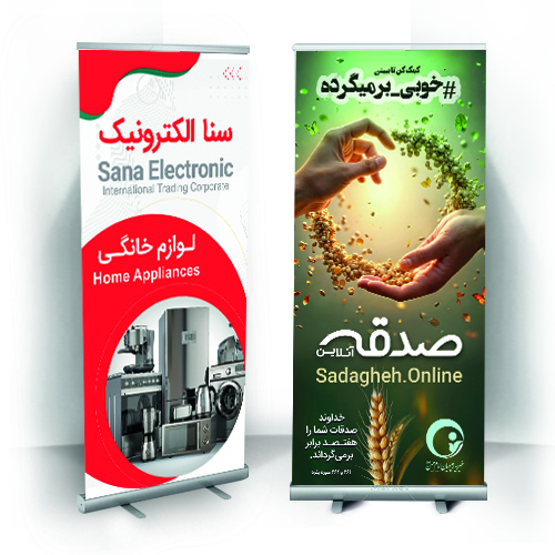 پرچم و رول آپ در انواع پایه آلومینیومی و فلزی، چاپ عالی، قابلیت حمل آسان و نصب سریع، در ابعاد متنوع و ...